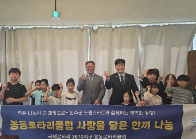 한편, 회원 80명으로 구성된 봉동로타리클럽은 취약계층 지원을 위한 물품 지원, 아동의류 지원사업 등 지역사회의 어려운 이웃과 아동·청소년을 위한 다양한 사회공헌활동을 펼치며 지역사회의 따뜻한 변화를 이끌어 가는데 앞장서고 있다.
