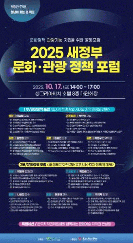 박양우 전 문화체육관광부 장관을 비롯해 문화·관광 분야의 전문 교수들이 좌장과 기조발제를 맡으며, 각 세션 주제발표 후에는 지역 교수 및 전문가들이 참여하는 심층 토론이 이어질 예정이다.