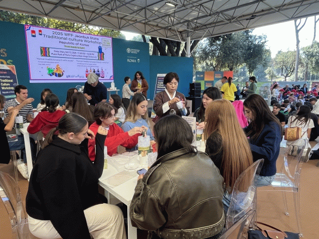 행사 기간 동안 운영된 ‘전북 전통문화 워크숍’에는 약 200여 명이 함께했다. 참가자들은 전북을 대표하는 한지를 활용해 청사초롱을 만들고 씨앗 복주머니 체험에 참여하며, ‘From Seeds to Foods’라는 지속가능성 메시지를 직접 담아냈다.
