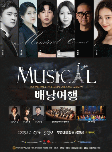 부안군 관계자는 “뮤지컬의 감동적인 노래와 오케스트라의 풍성한 선율이 함께 어우러져 관객들에게 마치 세계를 여행하는 듯한 경험을 선사할 것” 이라며 “많은 분들이 함께 오셔서 예술이 주는 감동과 즐거움을 나누시기를 바란다”고 말했다.