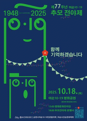 77주년을 되새기며, “함께 기억하겠습니다”를 주제로 여순사건의 희생자를 추모하고 지역사회가 역사를 함께 기억하며 그 의미를 다음 세대에 전하는 시민 참여형 문화예술 행사로 진행될 예정이다.