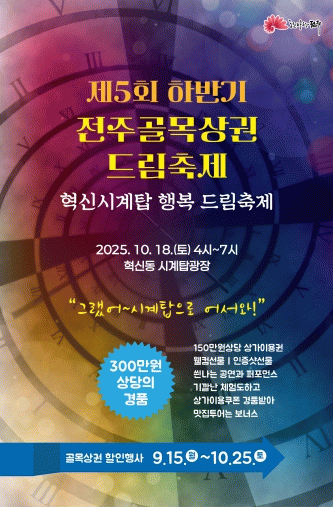 전주시는 오는 18일 오후 4시, 혁신동 시계탑 광장에서 지역 상인과 주민이 함께하는 ‘골목상권 드림축제’를 개최한다.