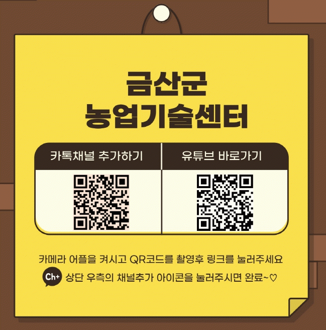 채널 이용은 인터넷에 금산군농업기술센터를 검색하거나 홍보물의 큐알(QR)코드 스캔을 통해 누구나 쉽게 이용할 수 있다.