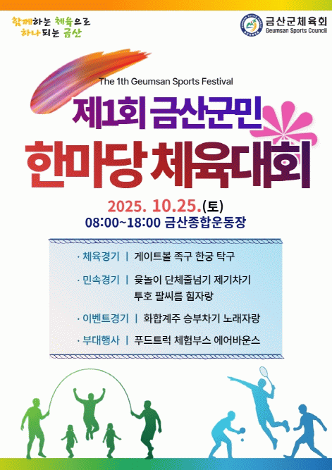 박범인 금산군수는 “이번 체육대회는 군민 모두가 함께 어울리며 웃고 즐기는 화합의 한마당이 될 것”이라며 “바쁜 일상에서 군민들이 잠시 쉬어가며 활력과 공동체 의식을 느낄 수 있는 뜻깊은 시간이 되길 바란다”고 말했다.