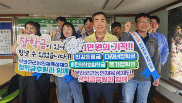 한편, (재)부안군근농인재육성재단은 연 2,200여명의 지역 청년들에게 약 20억원의 장학금 혜택을 지원하고 있으며, 1만원의 기적,『장학금 1군민 1후원계좌 갖기』의 범군민 후원 독려 운동을 통해 지역의 나눔 문화를 확대시켜나가고 있다.