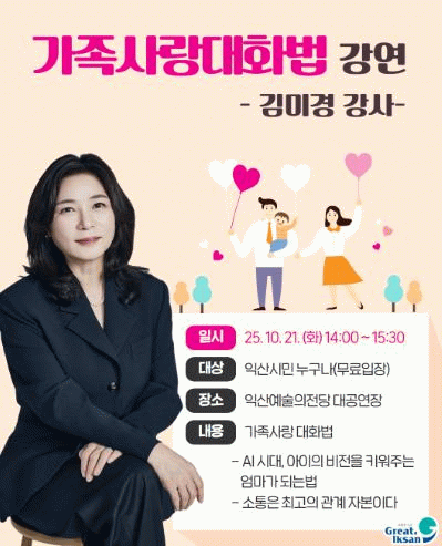 익산시 관계자는 "교육은 가정과 지역이 함께 키워가는 백년지대계"라며 "이번 강연이 시민들에게 교육의 가치를 다시금 생각하고, 아이들의 미래를 함께 고민하는 의미 있는 시간이 되길 바란다"고 말했다.