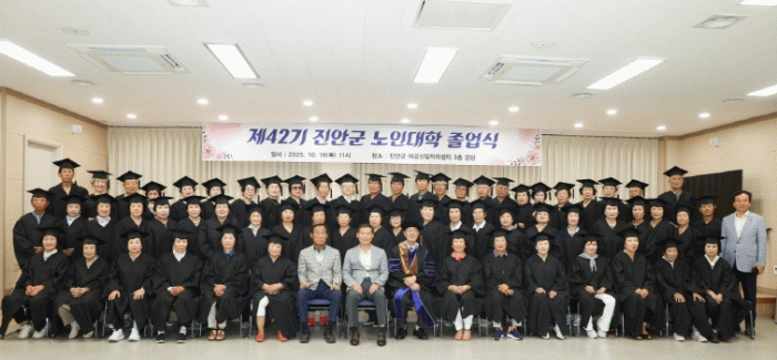 졸업식에는 노인대학생 70명을 비롯해 전춘성 진안군수, 동창옥 진안군의회의장, 전용태 전북도의원, 구동수 진안군노인회장, 전현준 대학장, 읍·면 노인회장 등이 참석한 가운데 수료증 수여 및 졸업식사, 축사, 격려사 순으로 진행했다.