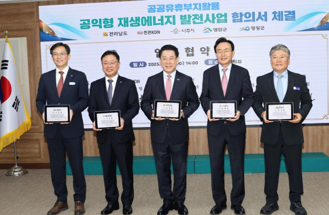 이번 협약을 통해 전남도와 영광군은 유휴 공공부지 발굴과 행정지원, 개발이익 공유계획 수립을 담당하고, 한전KDN은 재생에너지 설비의 효율적 운영과 통합관리체계 구축을 맡게 된다.