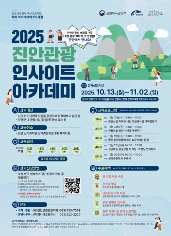 이번 아카데미는 진안의 자연·문화·로컬자원을 기반으로 ‘나의 아이디어를 관광콘텐츠로 발전시키고 싶은 사람’이 대상이다.