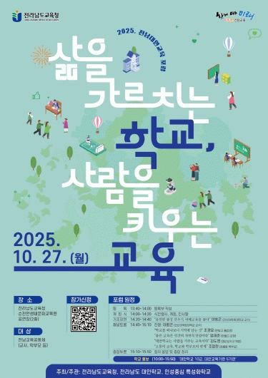 ‘삶을 가르치는 학교, 사람을 키우는 교육’을 주제로 열리는 이번 포럼에는 교사, 학부모, 학생, 전문가가 다양한 관점에서 전남형 대안교육의 가치와 방향을 논의한다.
