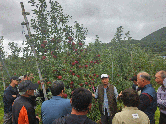 참석자들은 청송 지역의 선도 농장 2개소를 방문해 다축 재배 초기 과원 조성과 토양 관리, 수세 조절, 병해충 방제 기술 등을 집중적으로 학습했다.