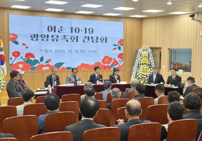 추념식 이후 열린 간담회에는 교육감, 광양유족회, 광양교육지원청 교육장 등 60여 명이 참석해, 역사왜곡(의심) 도서 관련 경과와 재발 방지 대책을 공유하고, 유족들의 의견을 수렴했다.