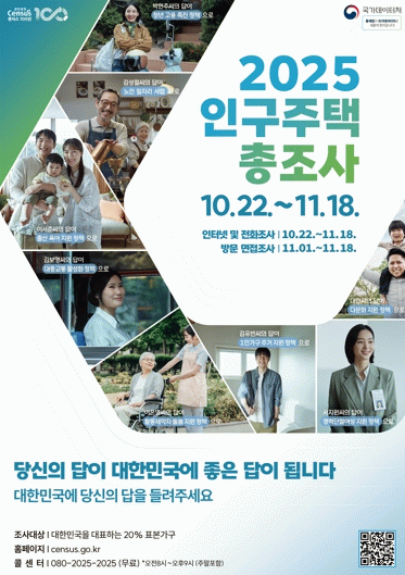 인구주택총조사는 5년마다 시행되는 국가 기본통계 조사로 우리나라 인구 규모와 가구 특성, 주택 현황 등을 종합적으로 파악해 각종 정책 수립의 기초자료로 활용된다.