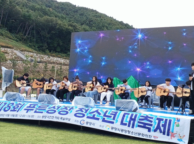 한편, 광양시는 푸른성장 청소년대축제 외에도 ▲청소년페스티벌(2월) ▲어울림마당(4~10월) ▲초록동요제(7월) 등을 통해 청소년이 소통하고 성장할 수 있는 기회를 꾸준히 제공하고 있다.