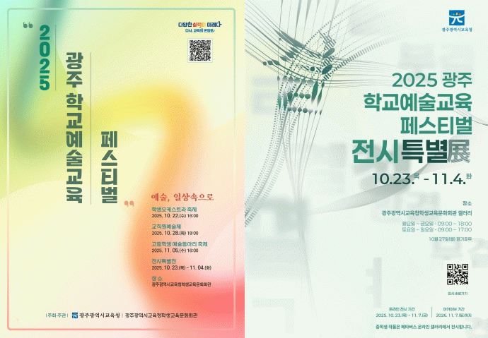 이 밖에 오는 23일부터 11월 4일까지는 학생교육문화회관 갤러리와 메타버스 온라인에서 특별전시가 운영된다. 전시에는 광주지역 교직원과 중·고등학생 68명이 참여해 작품을 선보인다.