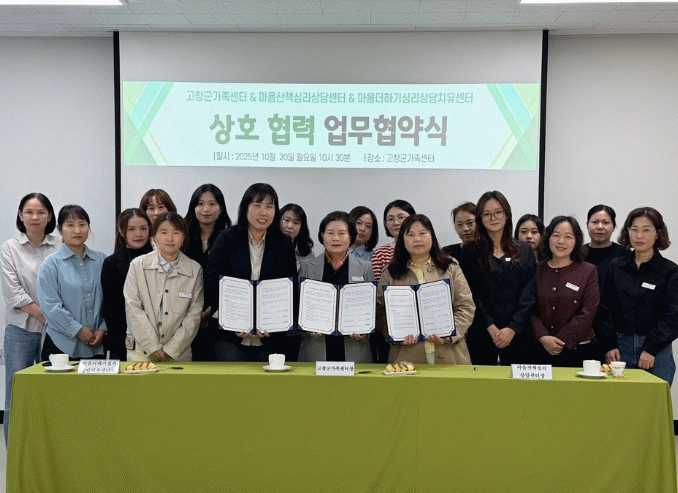 정혜숙 센터장은 “이번 협약을 통해 위기 상황에 처한 가족들이 전문적이고 체계적인 상담 서비스를 받을 수 있는 기반을 마련했다”며 “앞으로도 전문상담기관과 긴밀히 협력하여 고창군민 모두가 안정적이고 맞춤형 복지 혜택을 충분히 누릴 수 있도록 최선을 다하겠다”고 말했다.