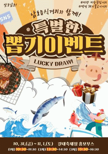 상품으로는 남도음식거리 이미지가 들어간 다양한 기념품이며 꽝없는 이벤트로 누구나 소소한 행운을 누릴 수 있다.