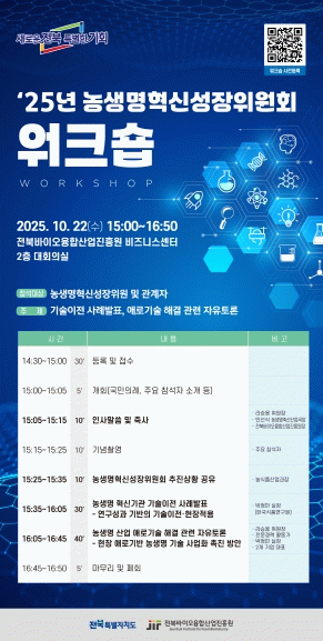 이번 워크숍은 농생명 산업의 현장 애로를 해결하고, 산‧학‧연‧관 협력 기반의 혁신 생태계를 강화하기 위해 마련된 자리로, 기업과 연구기관, 전문가가 함께 참여해 기술개발과 산업화의 연계 방안을 심도 있게 논의했다.