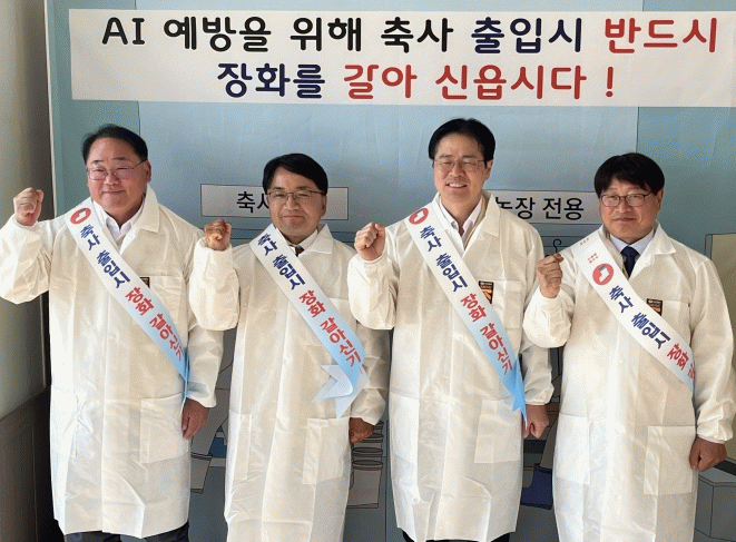 현장에서는 ‘농장 출입 시 장화 갈아신기 캠페인’을 실시하고 기본 방역 수칙의 철저한 이행과 함께 농가 스스로 실천하고 지켜내는 ‘자율방역 문화’ 확산을 강조했다.