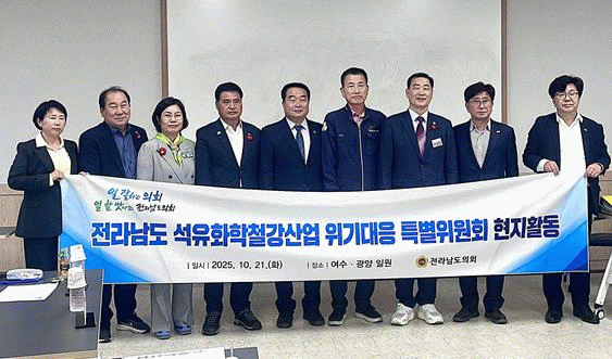 한편, 전라남도 석유화학철강산업 위기대응 특별위원회는 업계의 위기 극복과 지역경제 활성화, 고용ㆍ민생 안정 등에 힘을 쏟기 위해 2025년 5월 출범한 위원회로 최무경, 이광일, 강문성, 최병용, 박경미, 서대현, 주종섭, 임형석, 김화신 의원 등 산업 위기 지역인 여수와 광양 지역 의원으로 구성돼 있다.