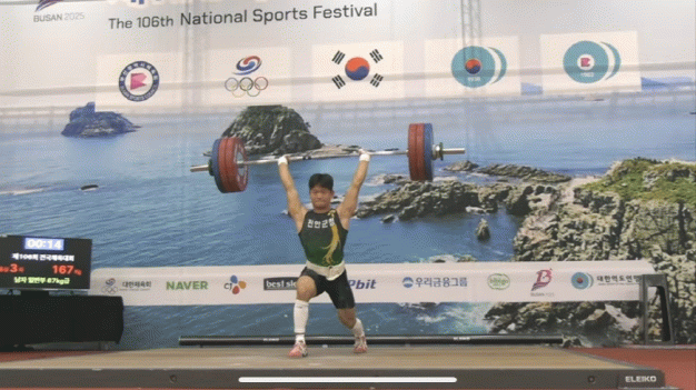 군에 따르면 김요한 선수(남자 67kg급)는 이번 전국체전에서 본인이 지난 6월, 경신했던 한국 주니어 용상 신기록인 167kg을 다시 들어 올리며 은메달을 차지했다.