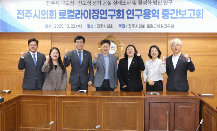 이번 연구용역은 구도심과 신도심의 상가공실 문제를 실증적으로 진단하고 전주형 상권 활성화 전략을 마련하기 위해 추진되고 있다. 연구회는 회장 최서연 의원을 비롯해 최명권 의원(감사), 신유정 의원(사무국장), 박형배, 이병하, 김학송, 최지은, 한승우 의원 등 총 8명의 의원이 참여하고 있다.