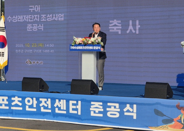 전북자치도는 23일 완주군 구이면 원기리 일원에서 ‘구이 수상레저단지 준공식’을 열었다고 밝혔다. 준공식에는 김종훈 전북특별자치도 경제부지사, 유희태 완주군수, 지역 정치권 인사와 군의원, 주민 등 300여 명이 참석해 단지의 완공을 함께 축하했다.