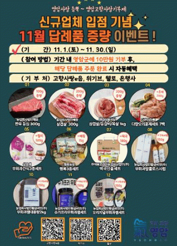 영암군은 감사의 의미를 담아 11월 ‘신규 답례품 업체 입점 기념 증량이벤트’도 준비 중이다.