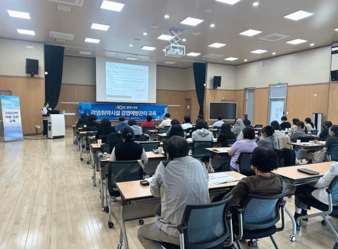이번 교육은 감염취약시설의 감염관리 체계를 강화하고 감염병 발생 시 신속하고 체계적으로 대응할 수 있도록 하기 위해 마련된 정기 교육으로, 요양병원·장기요양기관·장애인복지시설 등 고위험군이 상시 거주하는 감염취약시설 60여 개소의 감염관리자가 참석했다.