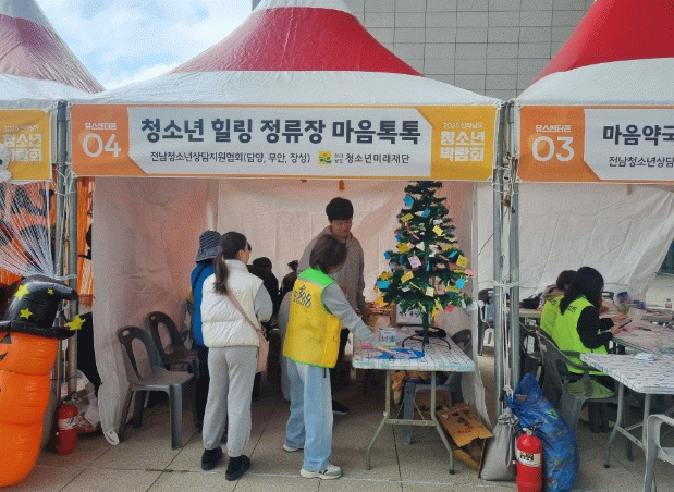 센터는 ‘스트레스 뿌셔!’ 프로그램을 통해 청소년들이 일상 속 스트레스를 시각적으로 해소하고,‘소망나무’에 희망 메시지를 걸며 치유의 시간을 가졌으며, 또한 현장에서는 청소년전화 1388 등 상담·지원 서비스를 안내하며 청소년 상담․지원망을 홍보했다.