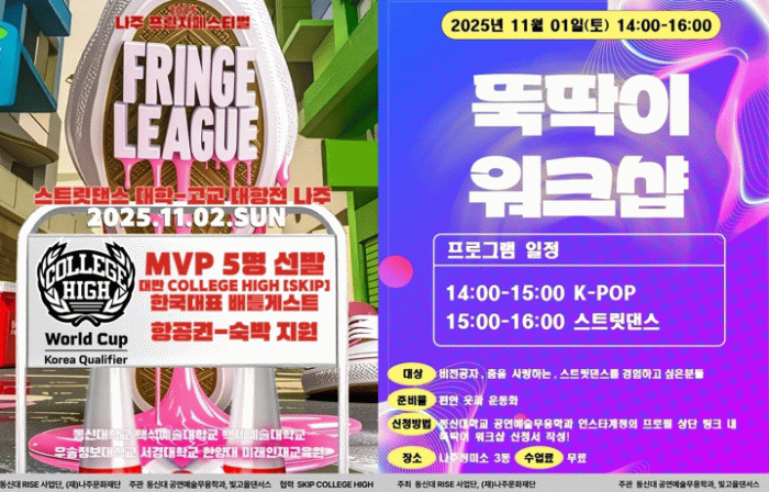 또한 ‘동신대학교 113 STREET’과 ‘한양미래인재교육원 FINALLY’ 팀이 축하공연을 선보일 예정이다.