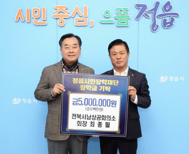이학수 시장은 “지역인재 양성을 위해 최종필 회장님의 지속적인 관심과 나눔에 깊이 감사드린다”며 “기탁하신 장학금은 정읍의 미래를 이끌 인재를 키우는 밑거름으로 소중히 활용하겠다”고 말했다.