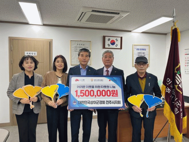 전주지역 국가유공자와 그 유족을 위해 설립된 대한민국상이군경회 전주시지회는 평소 어려운 이웃을 위한 나눔을 실천해왔으며, 이날 회원들의 정성을 모아 150만 원을 기부하며 전주시복지재단의 57번째 ‘백만천사’가 됐다.