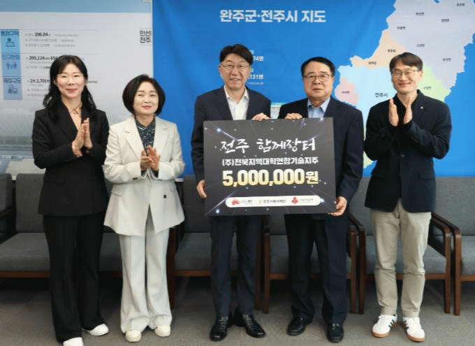 이 자리에서 ㈜전북지역대학연합기술지주는 전주시에 ‘전주 함께장터’ 추진을 위한 500만 원의 기부금을 전달했다.