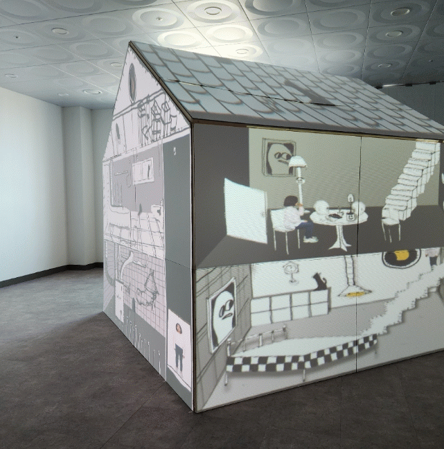 특히 집 모양의 설치작품에는 일상의 풍경과 인간의 감정이 디지털 영상으로 투사되어, 예술과 삶이 하나로 이어지는 듯한 독특한 감동을 전한다.