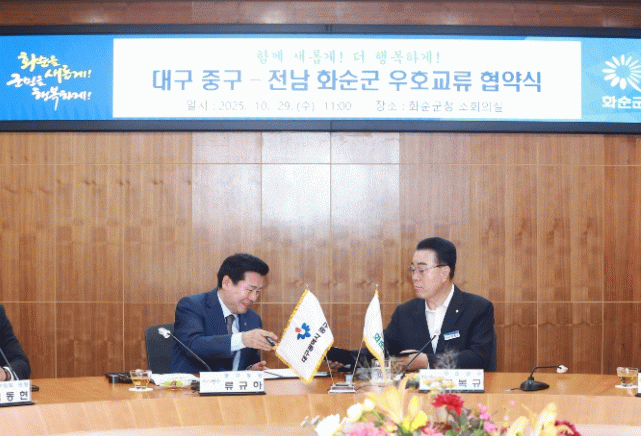 이날 협약식에는 구복규 화순군수와 류규하 대구 중구청장, 오형열 화순군의회 의장, 김동현 대구중구의회 의장을 비롯한 주민자치회, 새마을회 대표 등 민관이 함께 참석하여 그 의미를 더했다.