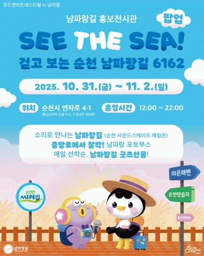 한편, 전시관은 축제 기간 동안 매일 낮 12시부터 밤 10시까지 운영되며, 위치는 순천시 연자로 4-1(황금프라자 인근, 인생네컷 맞은편)이다.
