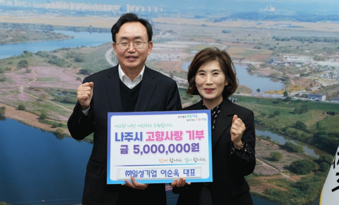 윤병태 나주시장은 “3년 연속 고향사랑기부제에 동참해 나눔의 뜻을 실천하는 이순옥 대표께 깊이 감사드린다”며 “기탁해 주신 기부금은 시민 복리 증진과 나주의 발전을 위해 적극 활용하겠다”고 말했다.