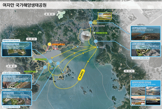 주요 사업 내용은 ‘작은 지구, 여자만! 자연과 사람이 지켜낸 공존 이야기’를 주제로 ▲해양보호구역 생태계 통합관리센터 시스템 구축 ▲갯벌 복원과 철새 서식지 확충 ▲염습지·멸종위기종 보호와 교육 시설 ▲갯벌 보전의 역사와 섬·해양 생태계의 가치 전시 ▲육·해상 생태 탐방 기반시설 확충 등이다. 지역민과 관광객이 함께 누릴 세계적 생태 체험 공간으로 조성될 예정이다.