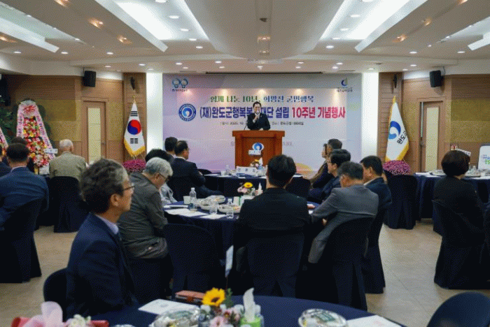‘함께 나눈 10년, 희망찬 군민 행복’을 주제로 열린 기념행사에는 신우철 완도군수를 비롯해 도·군의원, 후원자, 기관·사회 단체장 등 100여 명이 참석했다.