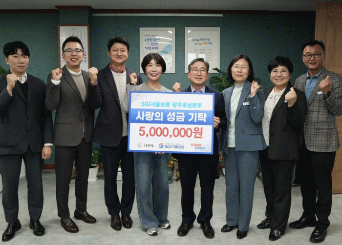 나주시는 SGI서울보증 광주호남본부(본부장 조지영)가 아동복지시설 ‘백민원’에 성금 500만 원을 기탁했다고 4일 밝혔다.
