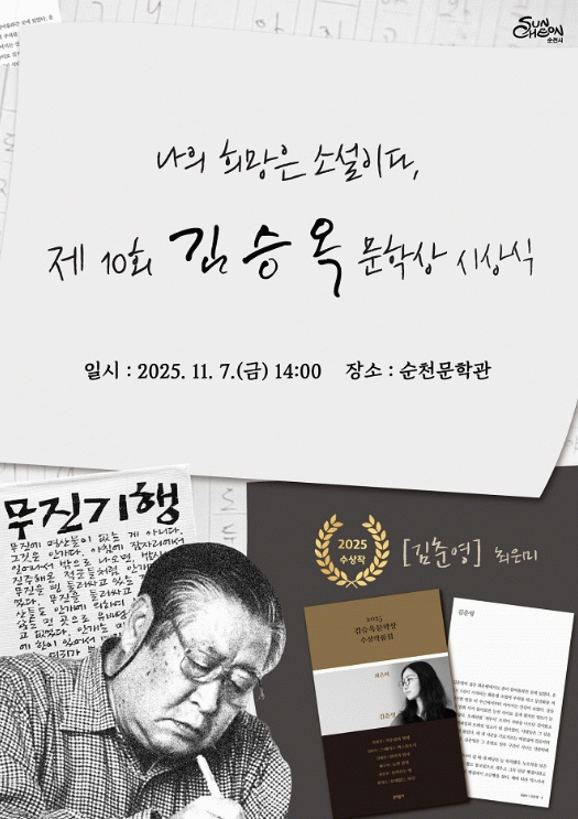 시 관계자는 “제10회 김승옥문학상 시상식은 순천이 문학과 함께 성장해 온 시간을 보여주는 뜻깊은 순간이다”며, “앞으로도 순천은 문학이 시민의 일상 속에서 숨 쉬고, 새로운 창작이 이어지는 문화도시로 발전할 수 있도록 최선을 다하겠다”고 전했다.