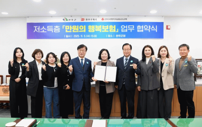 협약으로 완주군 저소득층 주민들은 재해 발생 시 유족 위로금, 입원비, 수술비 등을 보장받는 공익형 상해보험에 무료로 가입할 수 있게 됐다.
