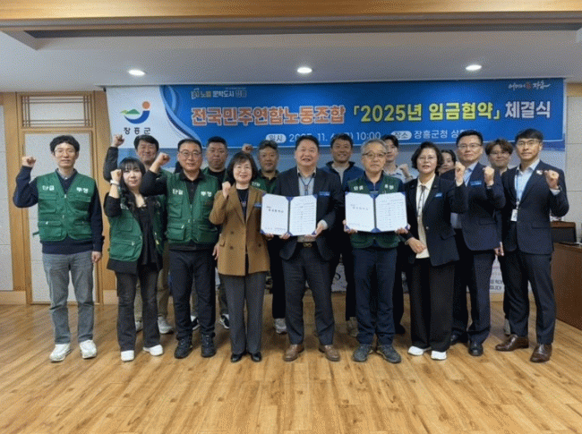 전국민주연합노동조합 장흥지부 위유환 지부장도 “공무직 처우개선을 위해 적극적으로 교섭에 임해 준 장흥군에 감사드리며, 앞으로도 노사가 서로 존중하고 이해할 수 있는 성숙한 노사문화를 만들어 가겠다”고 입장을 밝혔다.