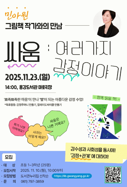 김현숙 도서관과장은 “이번 만남은 지역 어린이들이 평소 그림책을 통해서만 접하던 작가와 직접 대화할 수 있는 뜻깊은 자리”라며 “아이들이 작품과 더 깊이 친해지고, 독서의 기쁨을 발견하는 계기가 되길 바란다”고 말했다.
