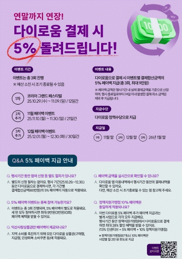 정헌율 익산시장은 "연말까지 이어지는 다이로움 환급행사를 통해 지역 내 소비 열기를 계속 이어가겠다"며 "시민 여러분의 적극적인 참여가 지역상권을 더욱 활기차게 만드는 동력이 될 것으로 기대한다"고 말했다.