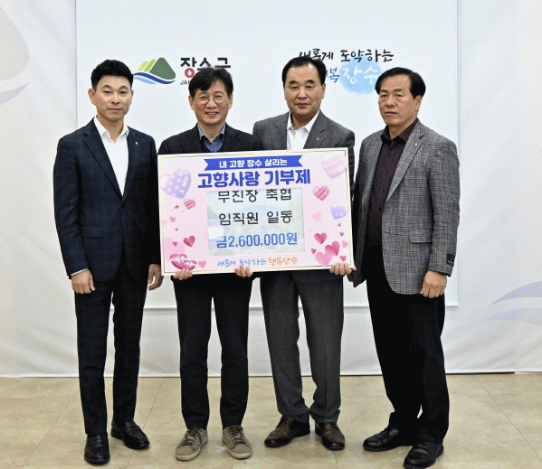 장수군은 10일 군청에서 최훈식 장수군수, 송제근 조합장, 백형수 장수지점장이 참석한 가운데 고향사랑기부금 기탁식을 진행했다고 밝혔다.