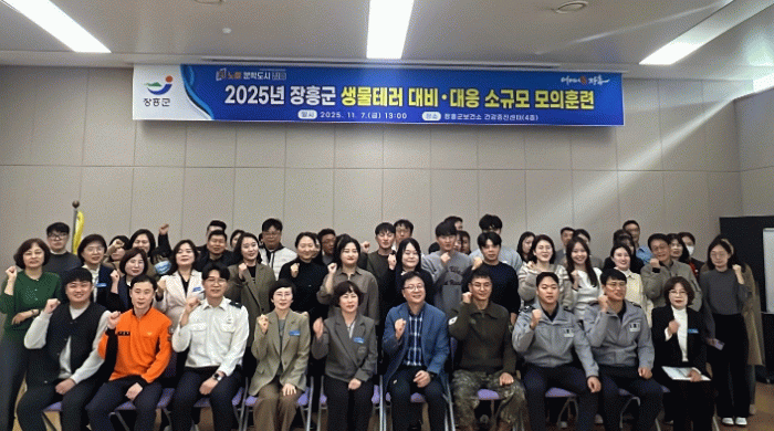 이번 훈련에는 전남도청, 장흥군 재난부서, 장흥경찰서, 장흥소방서 등 유관기관과 타 시군 생물테러 담당자 70여 명이 참여했다.