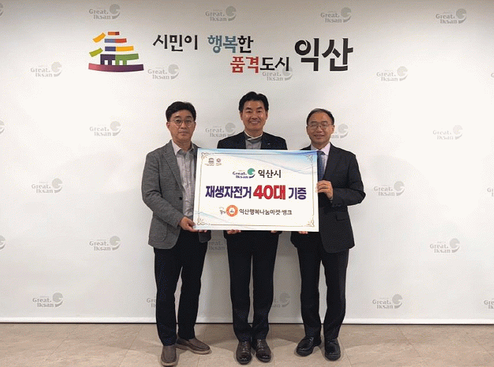 익산시는 10일 재생자전거 40대를 익산행복나눔마켓·뱅크에 기증했다. 이번 재생자전거 기증은 녹색교통 활성화와 나눔문화 확산을 위해 마련됐다.