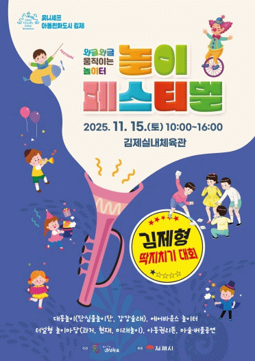 최미화 교육가족과장은 “이번 놀이페스티벌은 아이들이 마음껏 뛰놀며 웃을 수 있는 축제이자, 지역사회가 함께 만드는 아동친화도시의 상징적 행사”라며, “앞으로도 아이들이 자유롭고 행복하게 성장할 수 있는 놀이문화를 확산하고, 세대가 함께 어울리는 따뜻한 아동친화도시를 만들어 나가겠다.”고 밝혔다.